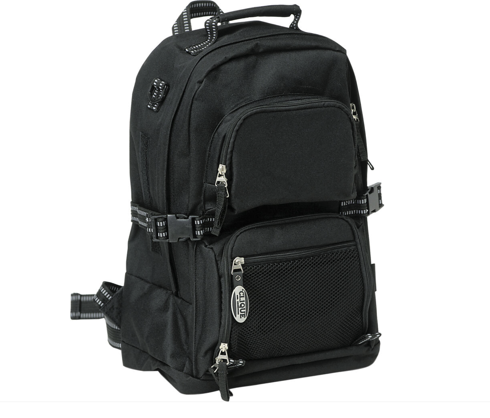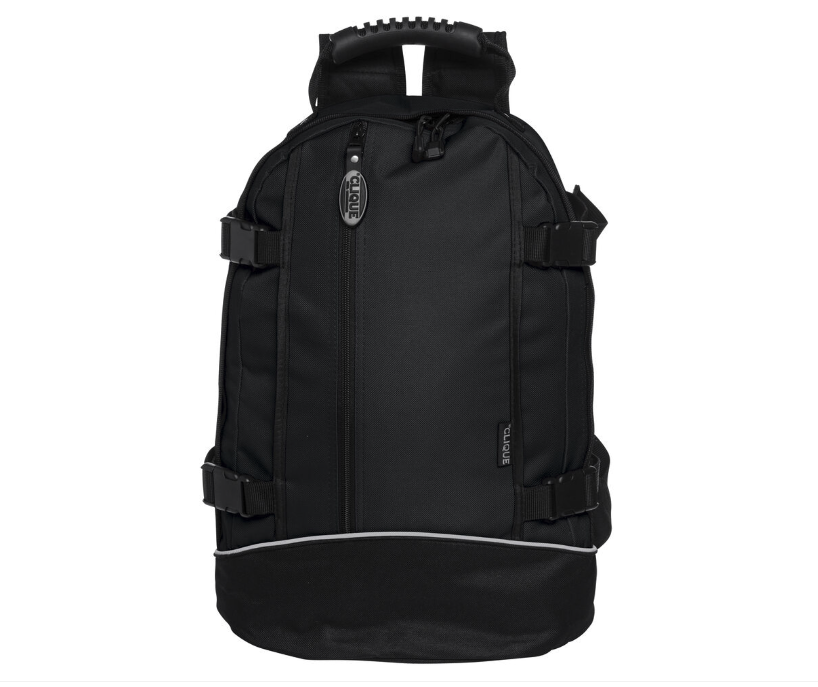 Innehåller certifierad återvunnen 900D polyester. Värdeficka med dragkedja upptill. Ficka med dragkedja på framsidan. Elastiska sidofickor. Internt vadderat laptopfodral, kompatibelt med upp till 16″. Justerbar frontstängning med dubbla spännen. Sladddragare. Dragskoförslutning. Kompressionsremmar. Vadderade justerbara axelremmar. Handtag. Justerbart bröstband