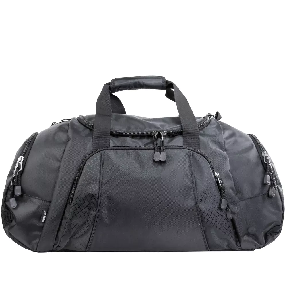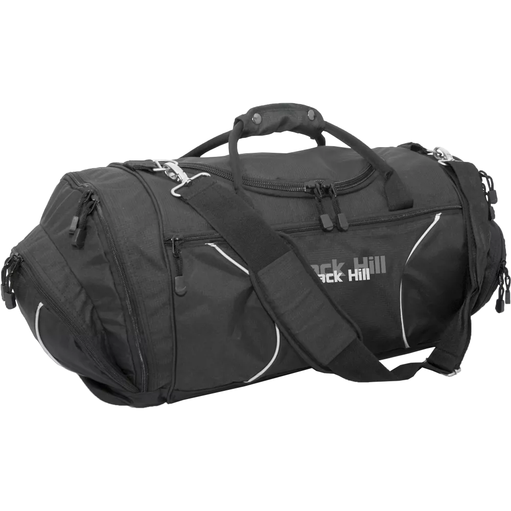 Bologna från Black Hill har stort huvudfack, rymliga gavelfickor samt dragkedjeficka på framsidan. Väskan är lätt att märka på framsidan vilket ger en snygg look och gör väskan till en bra teamväska för företag och idrottsföreningar. Starka material och ordentlig sömnad tillsammans med bärhandtag, axelband med vadderad axelplatta och spännen gör denna väska till en riktig favorit!