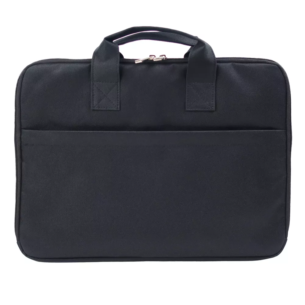 Toulouse är en stilren och slimmad laptopväska från Black Hill i 600D. Lätt att både transfertrycka och brodera, tack vare sin breda frontficka. Fickan är utrustad med blixtlås.